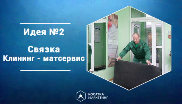 В прошлый раз мы говорили об одной из маркетинговых идей для клинингового бизнеса — «Инжиниринг-лайт», которая заключалась в партнерстве с организацией, оказывающей услуги по мелкому ремонту помещений, будь то протечка крана, выход из строя проводки и пр. Также весьма продуктивно работает связка «Клининг-матсервис» (Сервис сменных ковров).