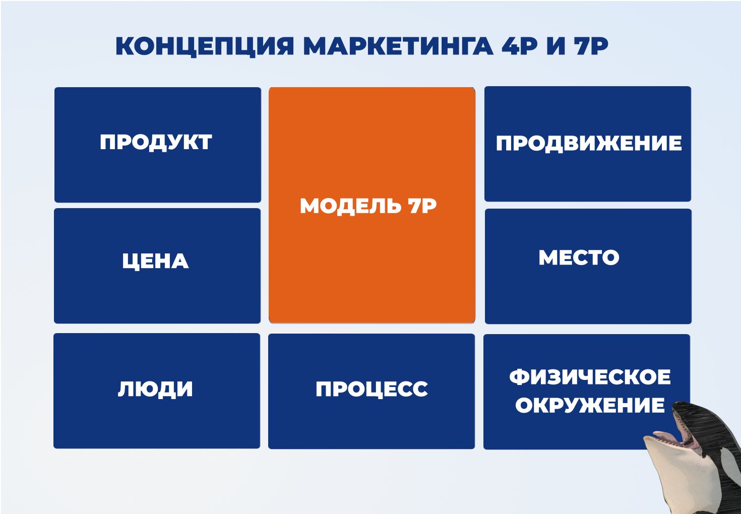 Составляющие концепции маркетинга 7P применяются для привлечения внимания целевой аудитории. Новая маркетинговая концепция базируется на абсолютном понимании рыночной системы, желаний покупателей и возможных перемен в будущем.